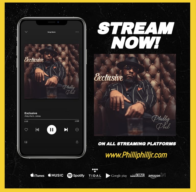 Philly Phil's latest single "Exclusive " glides like liquid gold from a saxophone's sigh, weaving tales of fleeting loves and urban reveries into a velvet groove that lingers long after the last note fades.